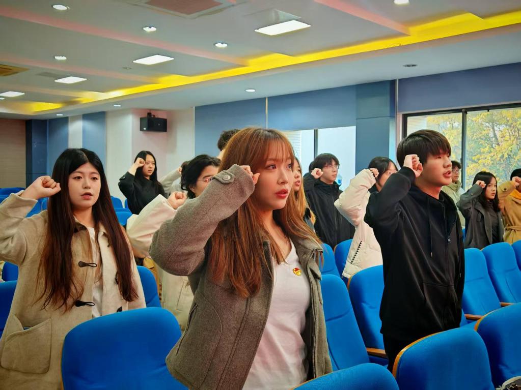 为引导青年学生厚植爱国主义情怀,筑牢信仰之基,11月26日下午,人文学院2025年新团员入团仪式在田家炳楼209会议室举行。学院分团委书记邓昌海,辅导员张雅静、姜正一、李婉婷、肖雨荷,团务中心主任张馨月,团建指导员,团支部书记及41名新发展团员共同参与本次活动。