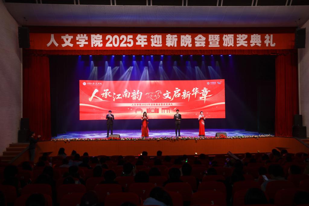 12月26日晚,人文学院“人承江南韵,文启新华章”2025年迎新晚会暨颁奖典礼在文浩馆隆重举行。学院党委书记王晖、院长伍红林等领导班子成员,校团委副书记吴垚,各系部教师、合作企业代表、校友及2025级全体新生齐聚一堂,共同见证这场承载传承与启新的盛会。