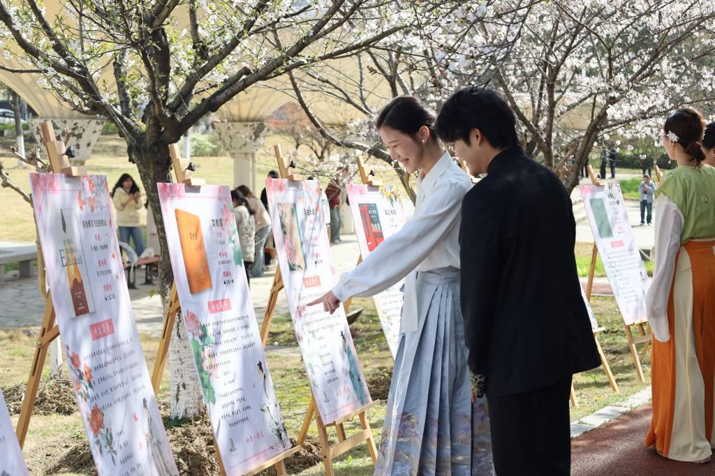 “在樱花树下感受诗词之美,是特别珍贵的校园记忆。而且今年新增了蹴鞠项目,可以沉浸式感受一下古代‘苏超’的火热。”人文学院本科生彭成丽表示。这场沉浸式文化盛宴,让千年诗词风韵走出书卷,成为触手可及的真切体验。