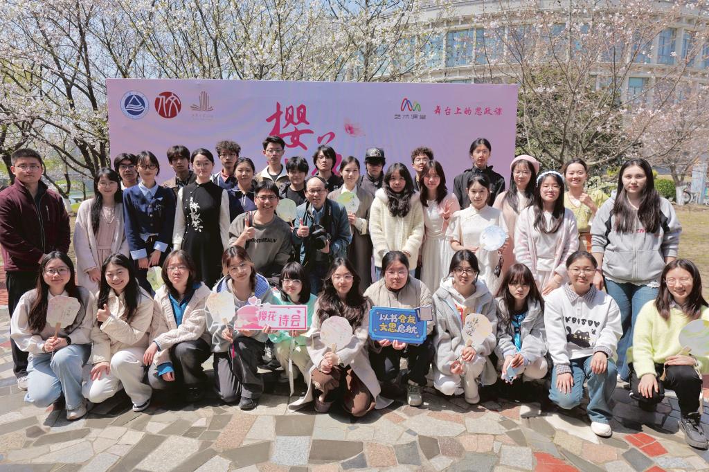 诗会以古今交融的形式温情启幕。少年执卷吟诵、汉服翩跹起舞、古曲与春声和鸣,樱林与诗韵相映,漫步其间仿若置身古韵江南,让中华优秀传统文化褪去尘封,化作可感可触的青春美学。