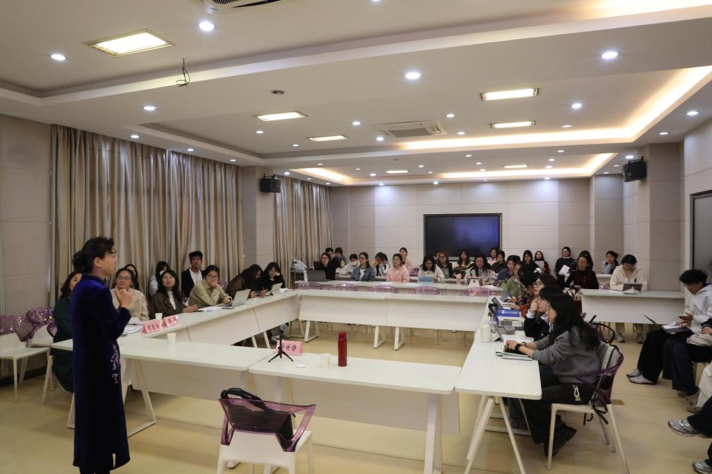 座谈会伊始,许老师以中国汉字“聽”为引,巧妙拆解传统文化内核,强调 “用耳、用眼、一心一意” 的专注倾听,是跨文化交流与学习的基础。她指出,西方教育理念中 “专注倾听” 的核心,正源自中国传统文化智慧,勉励学子坚守文化根基、树立文化自信,无论是否出国,都应传承中华优秀传统文化,以自信姿态开展跨文化对话。