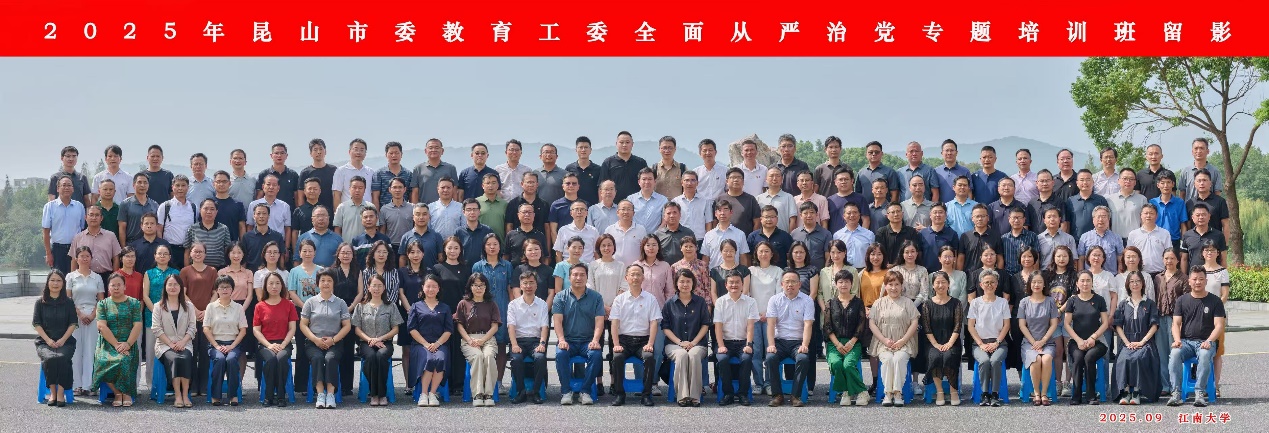 2025年9月26日下午,昆山市委教育工委全面从严治党专题培训班开班仪式在江南大学图书馆A510举行。昆山市委教育工委书记、市教育局局长王阳出席并作动员讲话,江南大学人文学院(教育学院)院长伍红林致辞,开班仪式由市委教育工委委员、市教育局副局长鲁静主持,昆山市公民办中小学、直属单位、直属幼儿园140余位党组织书记及部分学校校长参会。