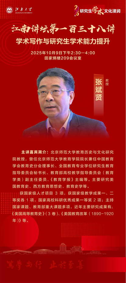 讲坛地点:江南大学人文学院田家炳楼209会议室
