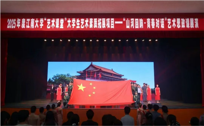 9月24日晚,为纪念中国人民抗日战争暨世界反法西斯战争胜利80周年,由江南大学党委宣传部、融媒体中心、人文学院(教育学院)及国家大学生文化素质教育基地联合主办的“艺术课堂”思政课展演《山河回响•青春对话》在江南大学文浩科学馆隆重举行。校党委副书记倪松涛,党委宣传部部长李佳敏,人文学院党委书记王晖出席本次展演,展演通过丰富的艺术形式,为师生呈现了一堂生动而深刻的思想政治教育课。展演以“山河回响·青春对...