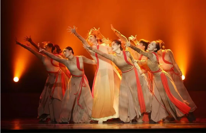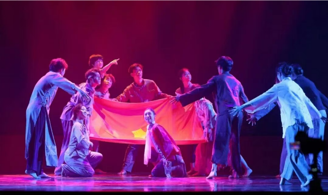 在第三篇章《和平必胜》,独唱《绒花》用温暖的声音诠释着那份朴素而坚韧的奉献精神。群舞《中华奇志》的青年舞者们以身躯为笔,挥酒出中国人顶天立地的精神气象,将“中华奇志”书写于天地之间。独唱《那一抹红》歌声深情而坚定,演绎出“那一抹红”背后沉甸甸的历史与希望。最后全场齐唱《国歌》,庄严的歌声回荡在会场每个角落,凝聚着在场所有人的赤诚与敬意,此刻个人的情感汇入了国家的脉搏,为整场演出画上震撼而圆满的句号。