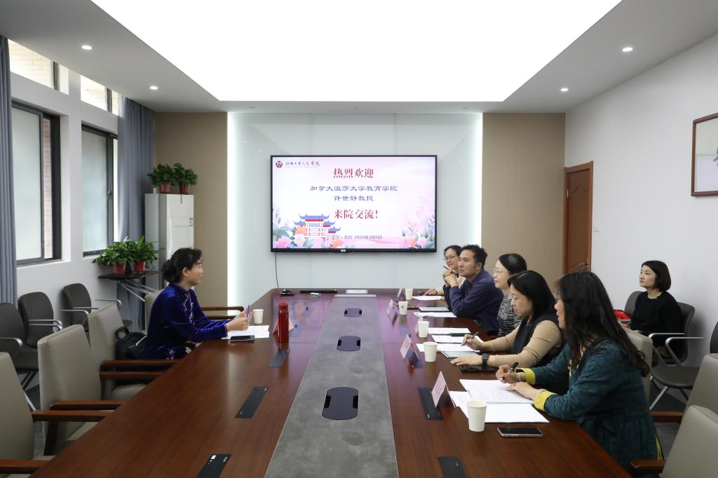 4月8日下午,加拿大温莎大学教育学院副院长许世静教授来访我院。国际交流合作处副处长蔡建英、人文学院党委书记王晖、院长伍红林、教师王萌及办公室相关人员参加交流座谈会,会议由学院副院长张春梅主持。