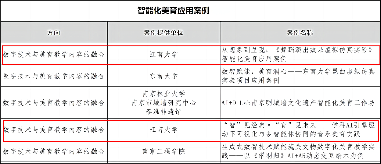 近日,教育部教育技术与资源发展中心(中央电化教育馆)公布2025年度数字化美育资源和智能化美育应用案例征集工作结果,我院孙丝丝教授团队的《“智鉴经典·育见未来”——学科AI引擎驱动下可视化与多智能体协同的音乐美育实践》、侯侠老师团队的《从想象到呈现:<舞蹈演出效果虚拟仿真实验>智能化美育应用案例》入选智能化美育应用案例。