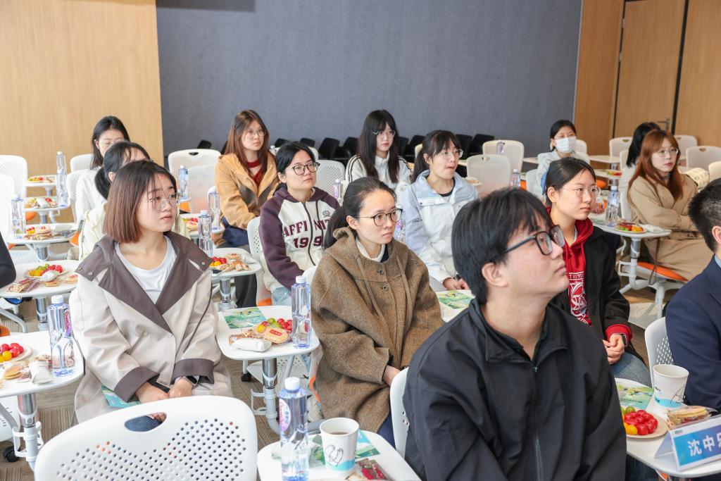 沈中乐对人文学院一行的到访表示热烈欢迎。王洪蕾详细介绍了新东方无锡学校的核心业务领域、当前的招聘需求以及完善的人才培养与发展体系。周毅伟结合自身经历分享职业发展现状以及入职体会。